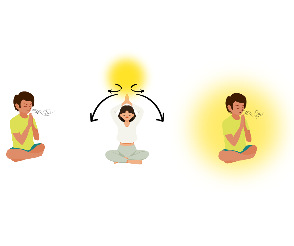Najděte si vhodné místo k sezení. Několikrát se zhluboka nadechněte a vydechněte. Při výdechu si vizualizujte, jak odchází vše, co vás v tuto chvíli tíží.